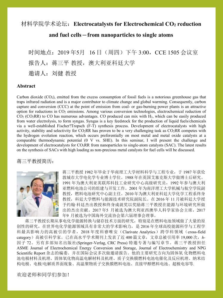 伟德国际BETVlCTOR学术论坛:Electrocatalysts for Electrochemical CO2 reduction and fuel cells – from nanoparticles to single atoms
