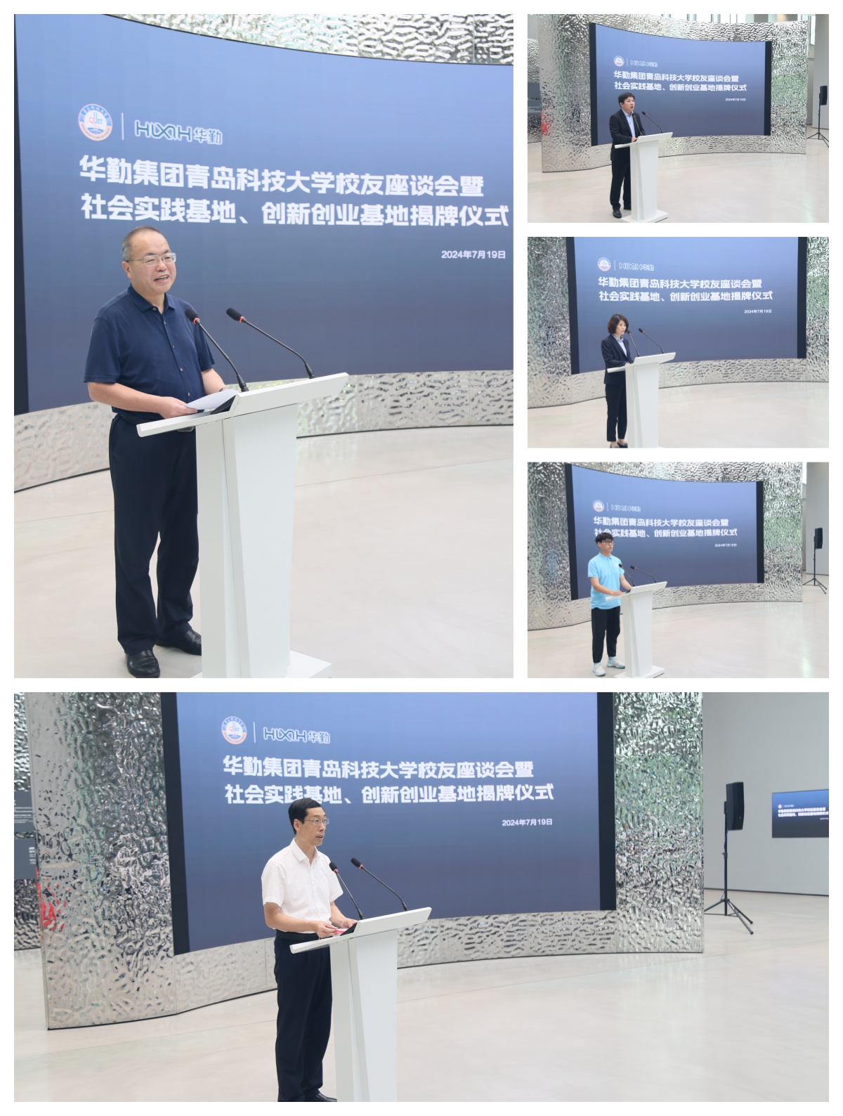 丁林在讲话中对兖州区及华勤集团为学校学科筑峰、科技创新、员工就业等方面提供的支持和帮助表示感谢,鼓励实践团的同学们结合自身专业知识和技能,在科技攻关最前沿、乡村振兴主阵地、“三下乡”的生动实践中经风雨、见世面、壮筋骨、长才干,描实绘清“青科大人的样子”。王营介绍了兖州区经济社会发展情况以及青年人才引进政策,鼓励企业积极寻求科研资源,实现成果转化落地。华勤集团总经理牛飞对丁林一行的到来表示热烈欢迎,希望借此机会与青科大进一步强化合作,攻关科研难题,助力校企合作共赢。华勤集团优秀员工代表贺振兴、袁金玲鼓励青科大学子躬亲实践、求实创新、立志报国。实践队队长孙宁翰介绍了社会实践队的基本情况,汇报了社会实践计划,号召团队成员严格要求自己,遵守纪律、团结协作,力争圆满完成各项实践任务。