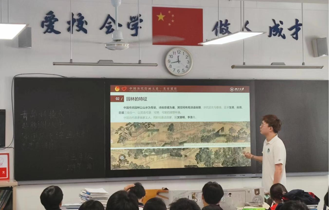 宣讲队赴株洲八中高三年级398班进行“中国古代绘画中的园林”宣讲,通过诗意之境:园林与园林绘画、名士之乐:司马光与独乐园、造园之法:巧于因借,情景交融、高山之行:文以载道,极尽能事四个部分的宣讲,使员工们走进绘画中的园林,了解绘画技巧以及蕴藏于园林画中的文化知识。