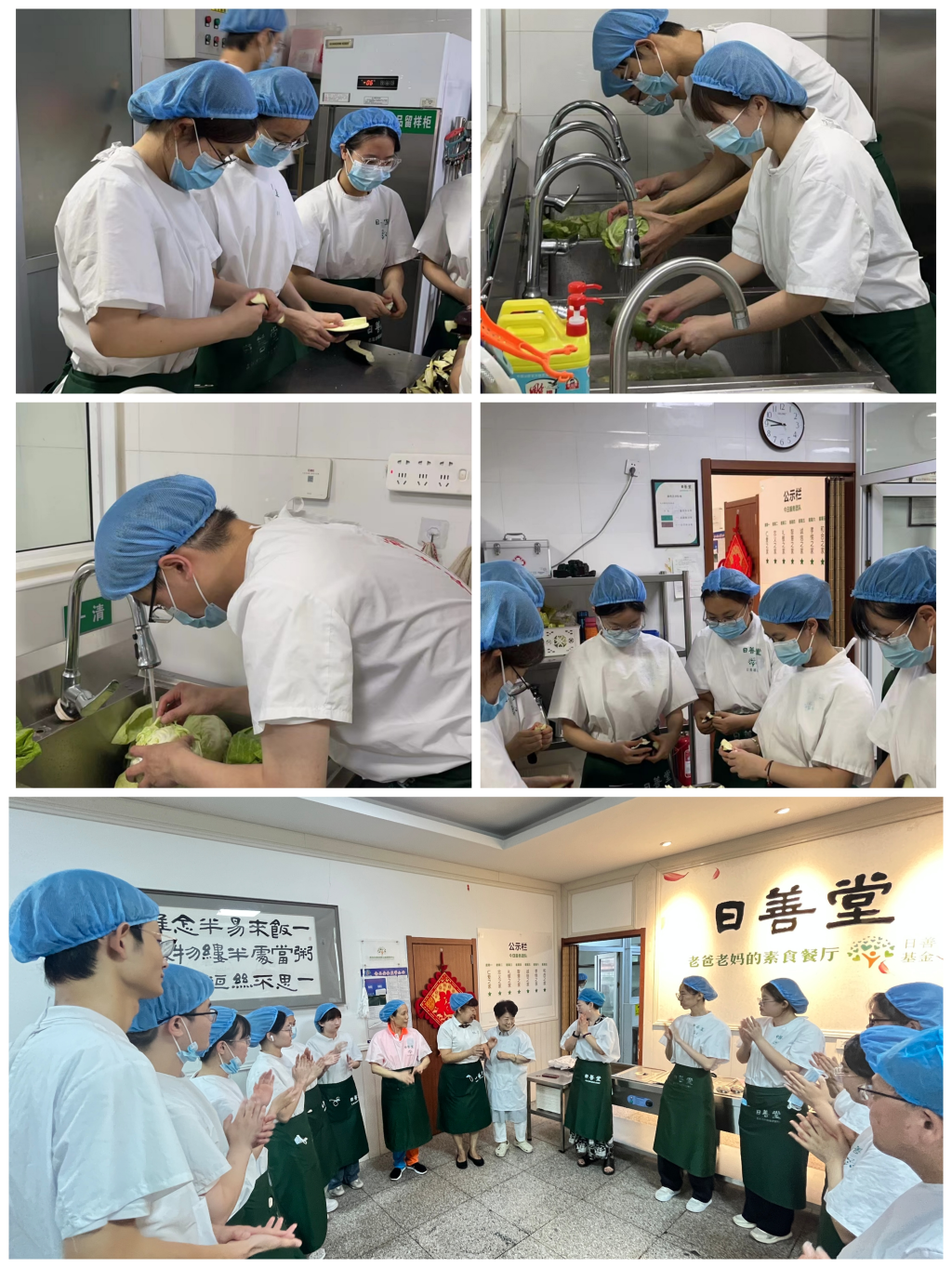 日善堂是一家致力于为社区内的孤寡老人、贫困家庭和残障人士提供免费餐饮和关爱服务的公益机构。在上午8时,同学们抵达日善堂,受到了日善堂工作人员的热烈欢迎。由日善堂的创始人张厂长和刘梦店长带领同学们开始早会,进行分工安排工作。之后同学们迅速投入到了紧张而有序的准备工作中。同学们走进厨房,开始为日善堂的老人准备午餐。他们认真地清洗蔬菜、精心地切配食材。之后认真练习校歌,为即将开始的文艺演出做着准备。