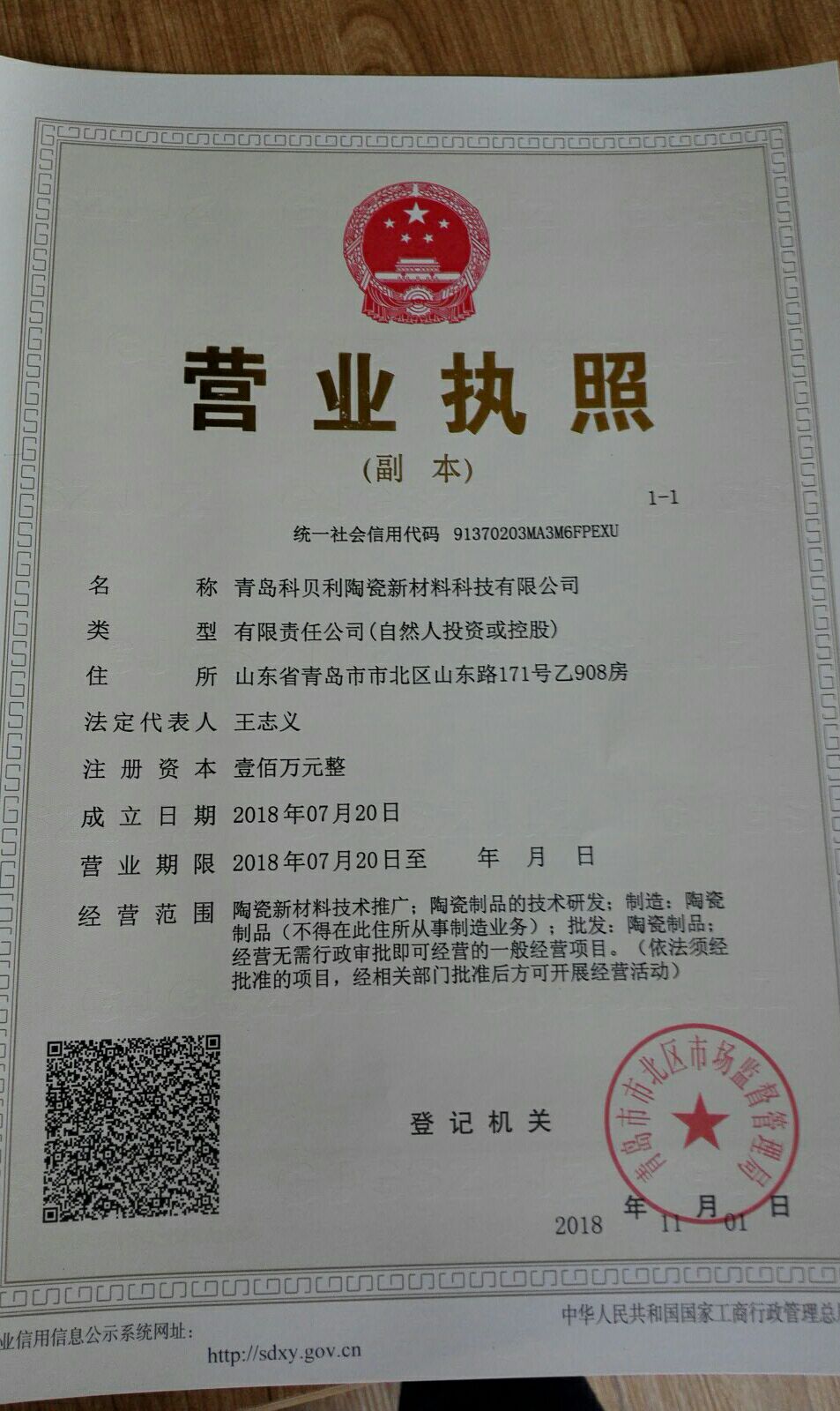 为贯彻学习习近平新时代中国特色社会主义思想和党的十九大精神,响应山东省“新旧动能转换”重大工程和学校“五有”高水平大学建设,伟德国际BETVlCTOR王志义教授于2018年7月注册成立科技型、学科性公司--青岛科贝利陶瓷新材料科技有限公司,注册资本100万元人民币。